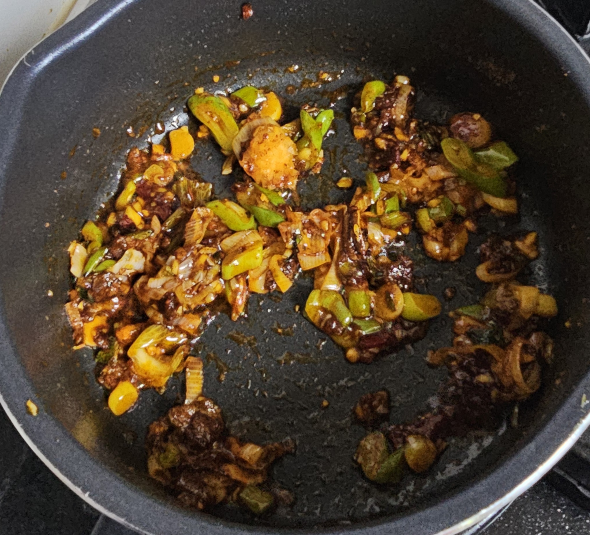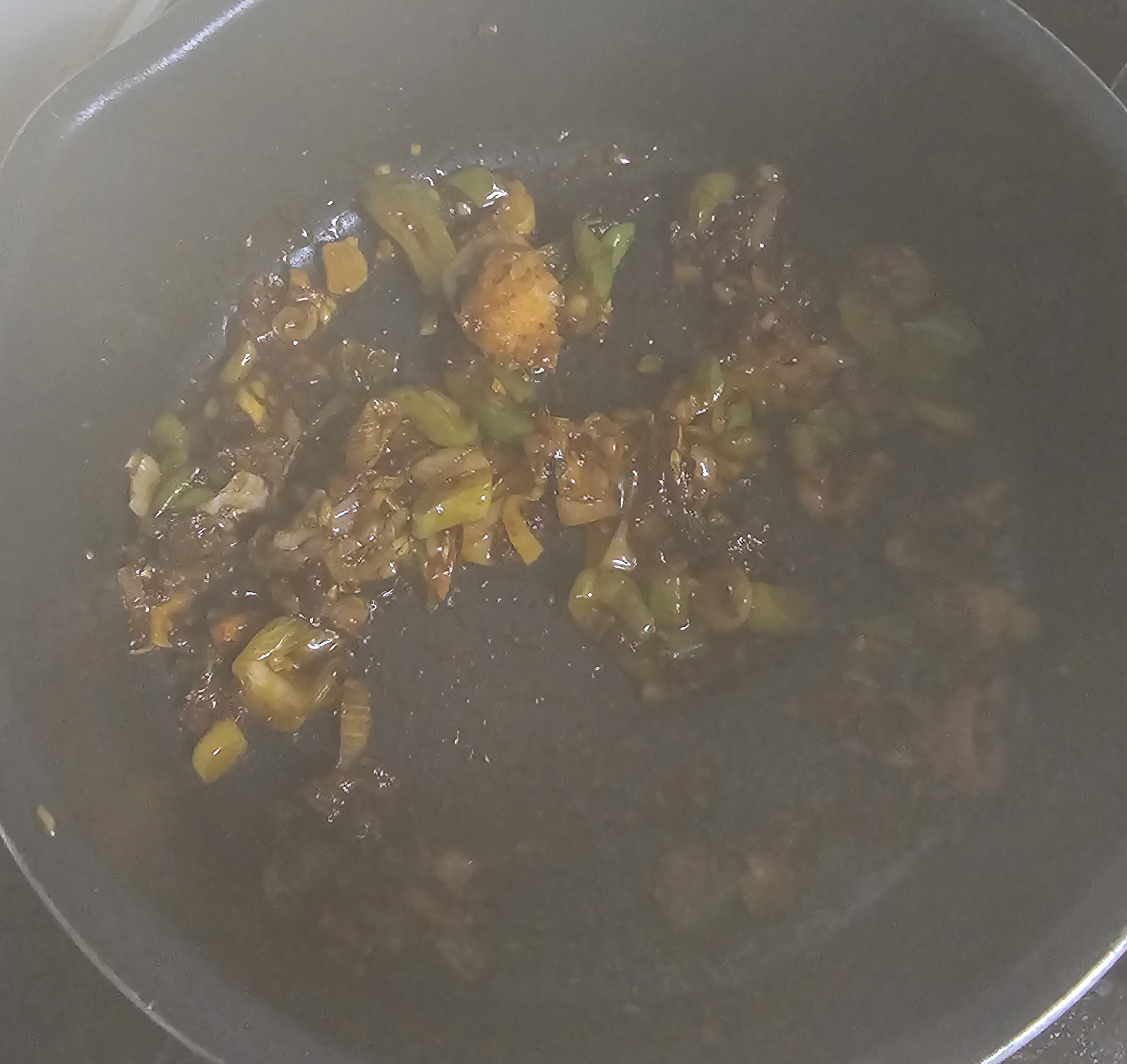 송송 썬 파 볶아주다가 파기름 올라온 것 같으면 다진마늘, 스프 두 가지 전부 넣고 더 볶아줬다. 분말스프 뜯자마자 매운 냄새 확 올라왔어…… 맵찔인데 먹을 수 있을까