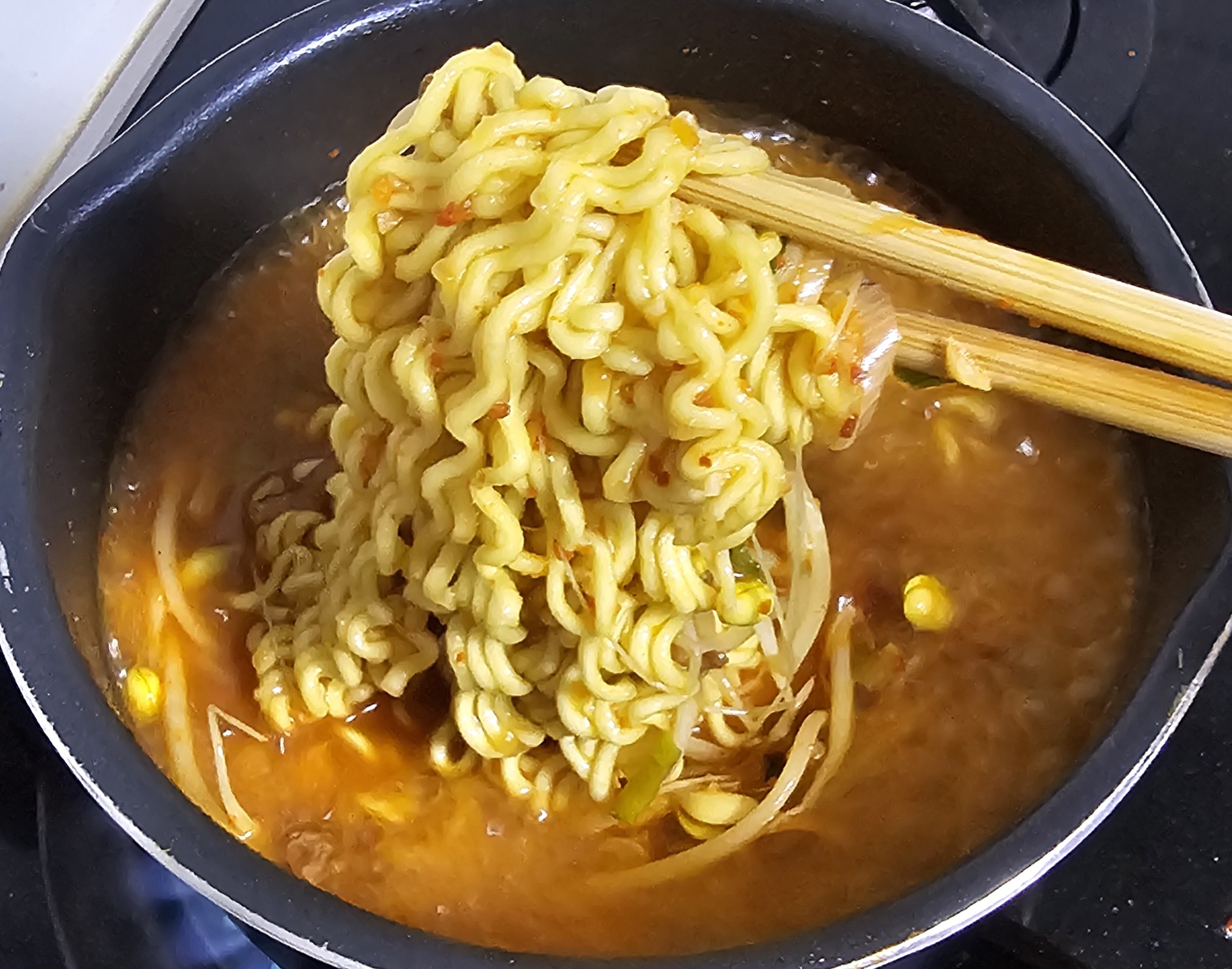 하나도 안 익었지만 계속 들었다놨다 해줘야 함 생활의 달인에서 라면가게 하는 아저씨가 이래야 공기를 만나서 더 맛있어진다고 그랬음