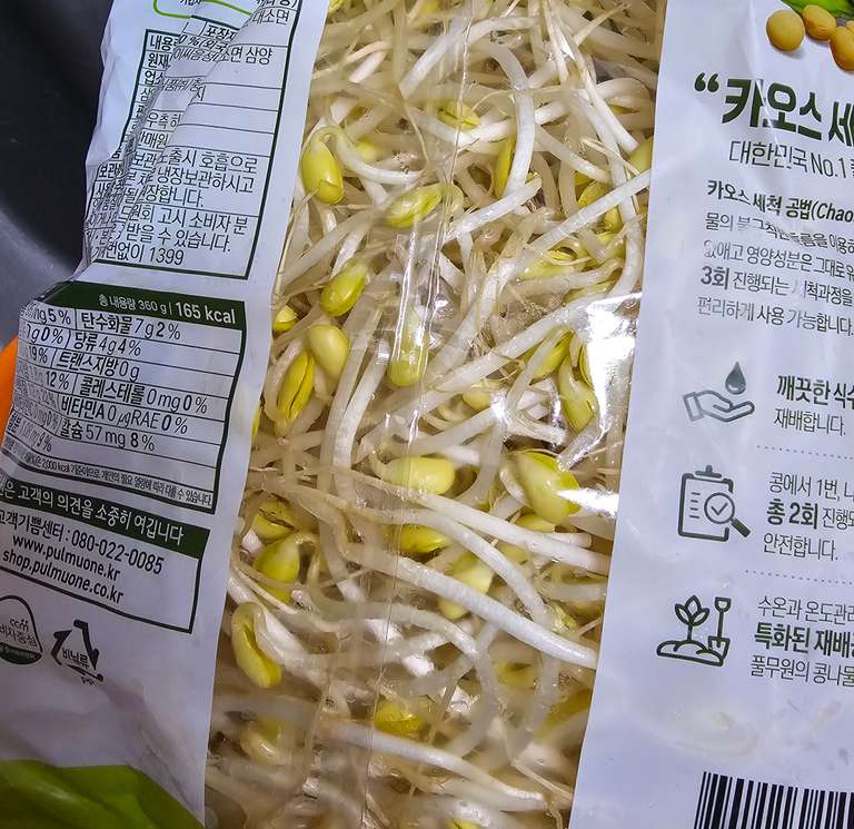 소비기한이 한참 지난 콩나물도 꺼내주기 ㅎ 2주도 더 지났는데 매우 멀쩡하다 와우 양배추처럼 얘도 안 죽는구나